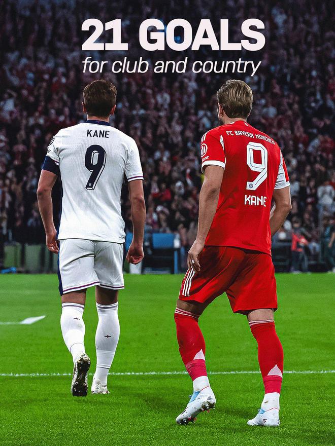 凯恩本赛季至今各赛事21球3助,对阵多特若进球获创造历史